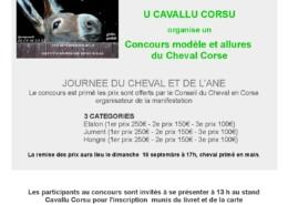 A l’occasion des journées de l’âne et du cheval à Casatorra le 16 septembre 2018 U Cavallu Corsu organise un concours Modèle Allures. Le concours est primé, les prix sont offert par le Conseil du Cheval en Corse organisateur de la manifestation.