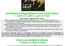 Fiera di u Pratu : 29 juillet l’associu organise une Commission d’approbation et Concours modèle et allure primé.